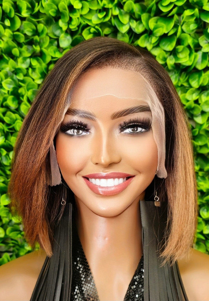 Revamp your look with our Auburn Brown Strawberry Blonde Straight Lace Front Wig HD Lace Front Wig 4C Edges Mix Kinky Yaki Texture Short Bob Hair Natural Hairline Wig.