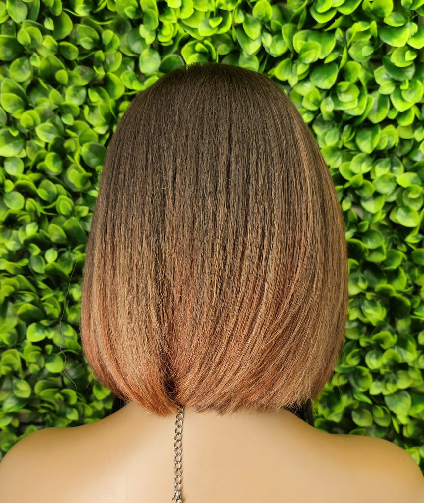 Auburn Brown Bob Wig: HD Lace Front, Yaki Texture Synthetic Hair