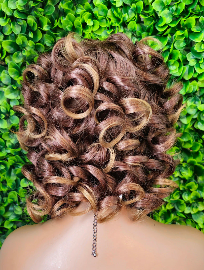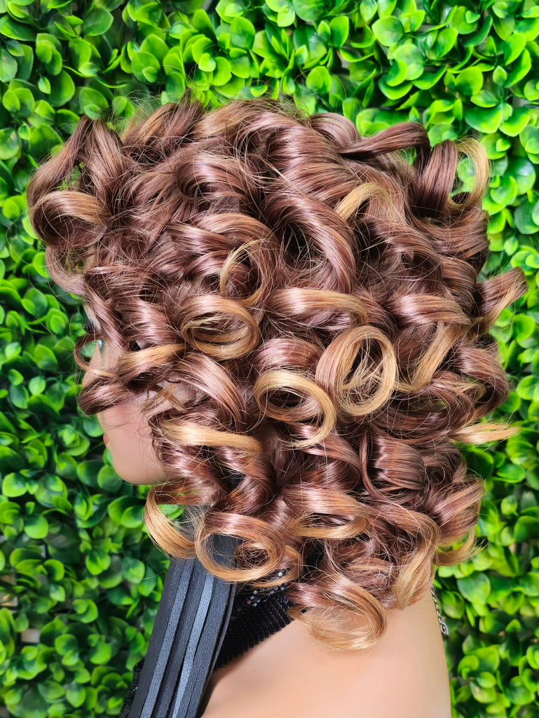 Brown Strawberry Blonde Curly Wig, Big Spiral Curls, Fashion Wig