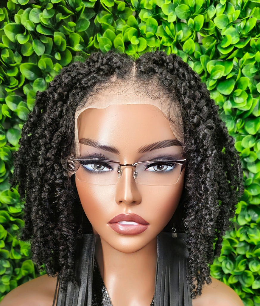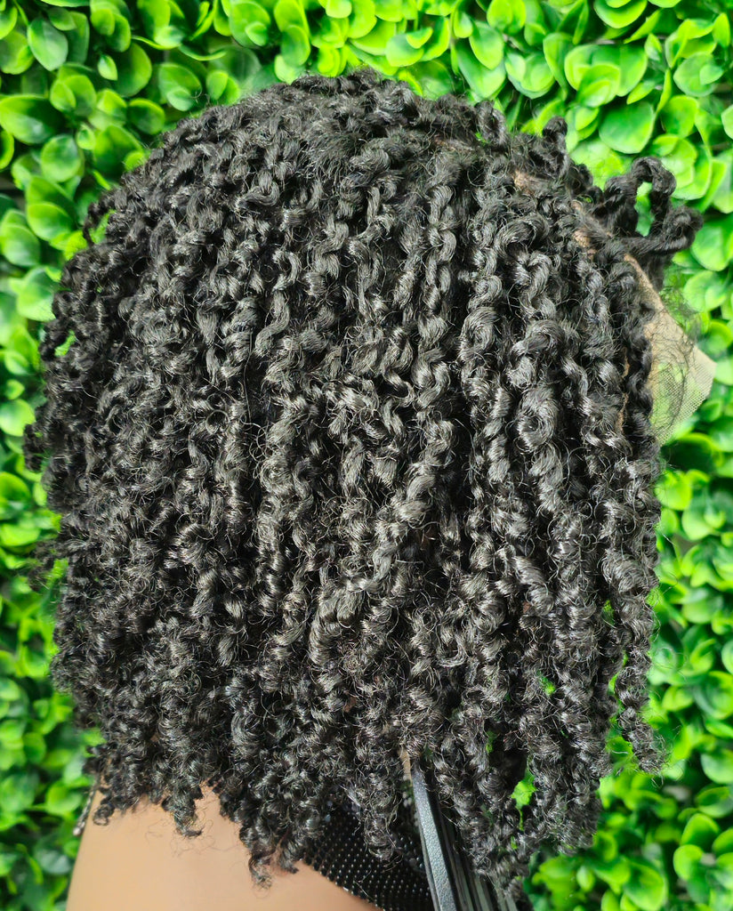 Achieve a beautiful natural protective style instantly with this short yanky twist lace front wig. Designed with realistic textured twists, this wig mimics the look of freshly styled natural hair while offering the convenience of a ready-to-wear unit.